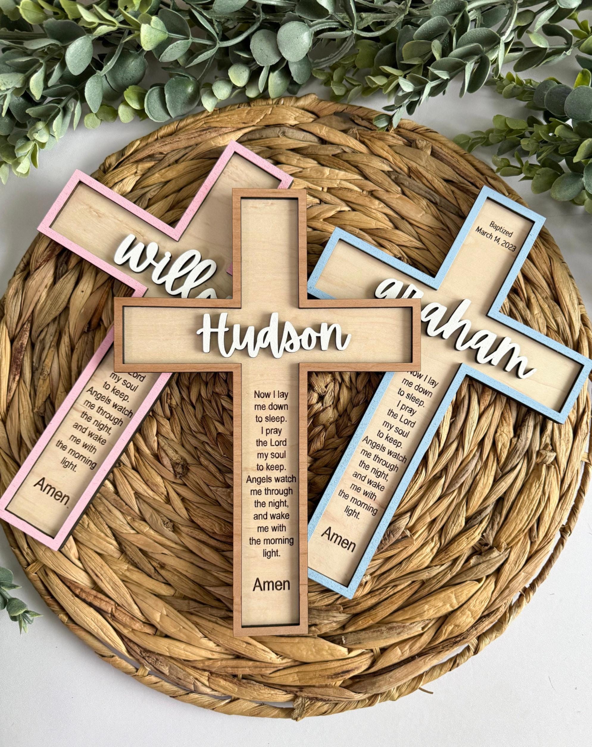 This cross is suitable as a gift for Baptism, Christening, Dedication, Communion, Baby Shower, Easter, or as a keepsake for nursery or wedding decorations.